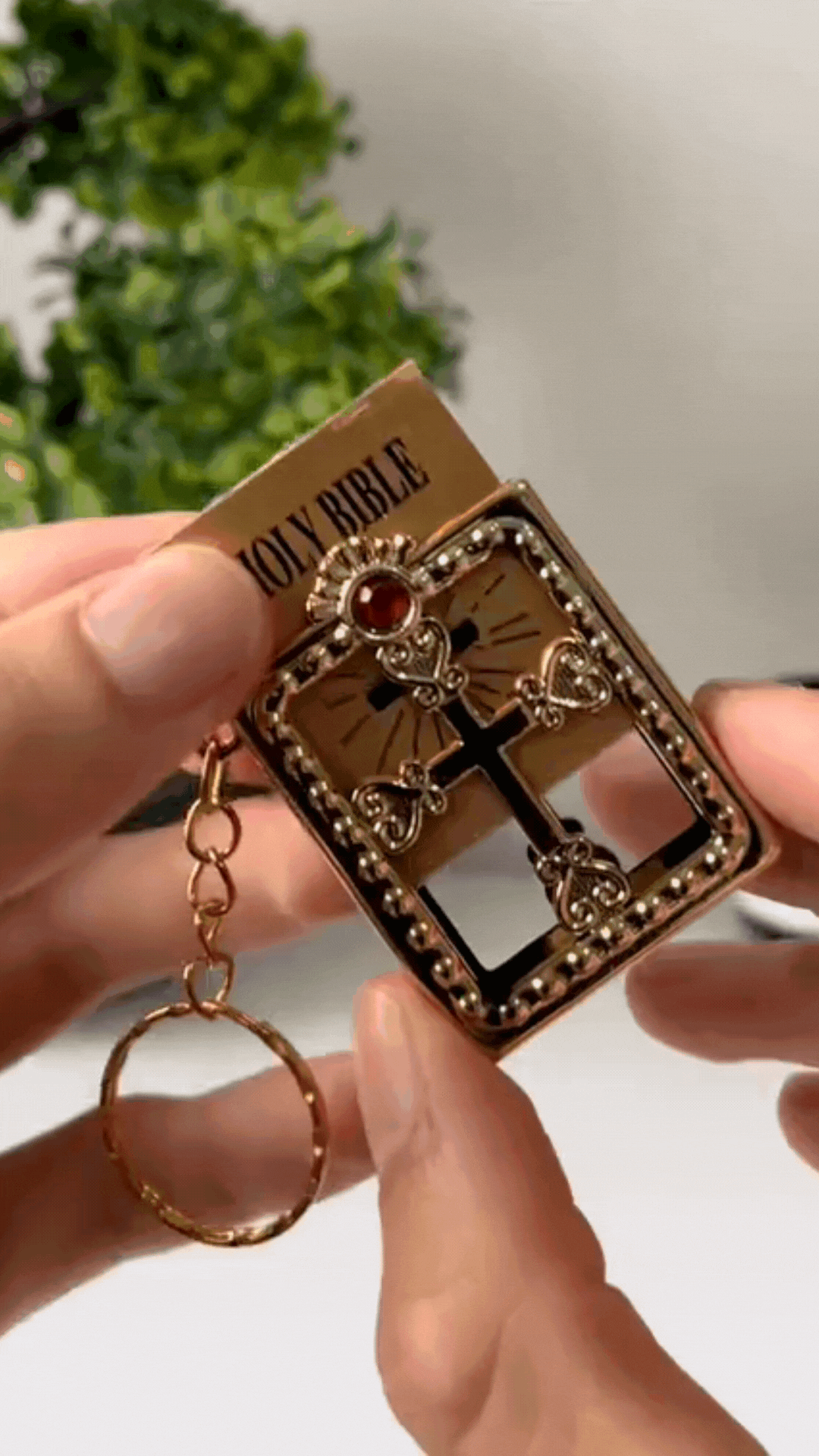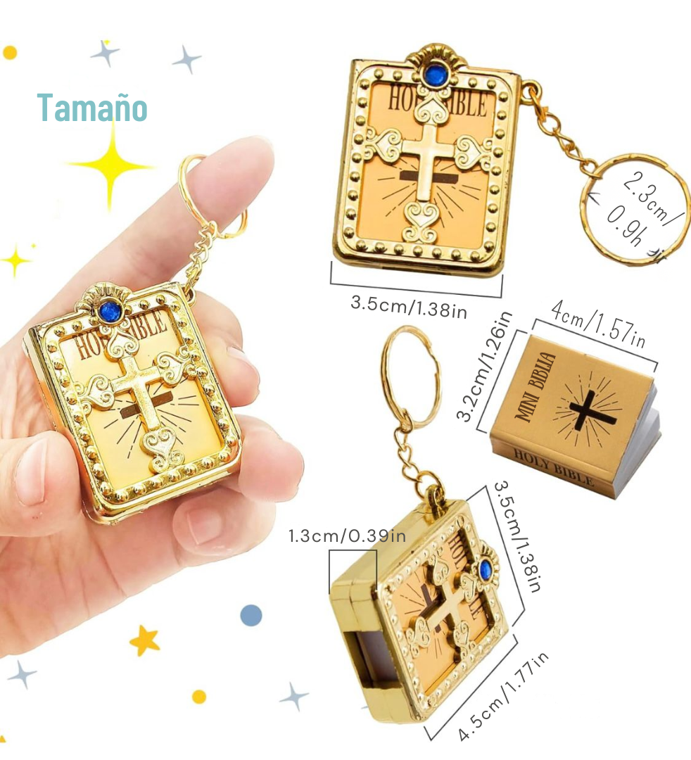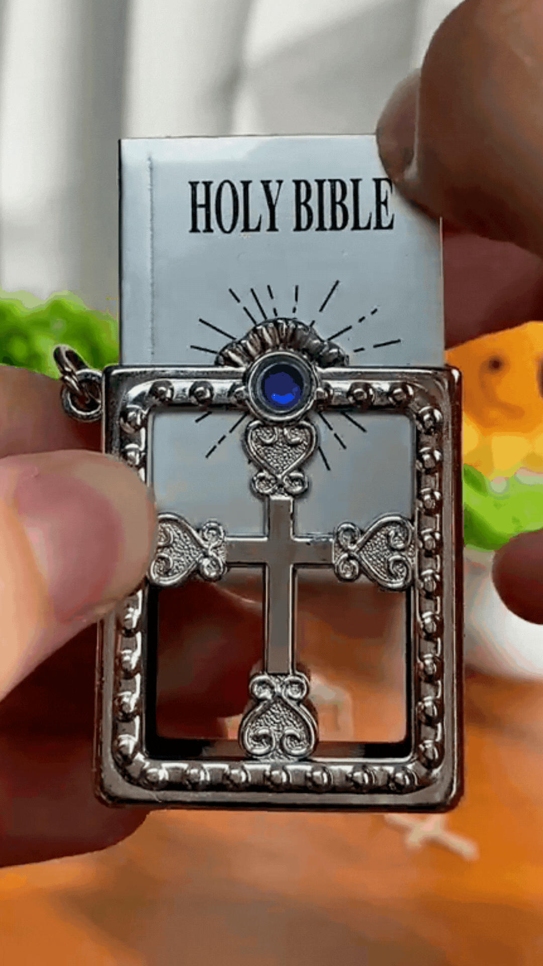 Sí, contiene todos los libros y versículos de la Biblia en formato miniatura. No es solo un adorno: es un símbolo de fe real que puedes abrir, leer y llevar contigo todos los días.